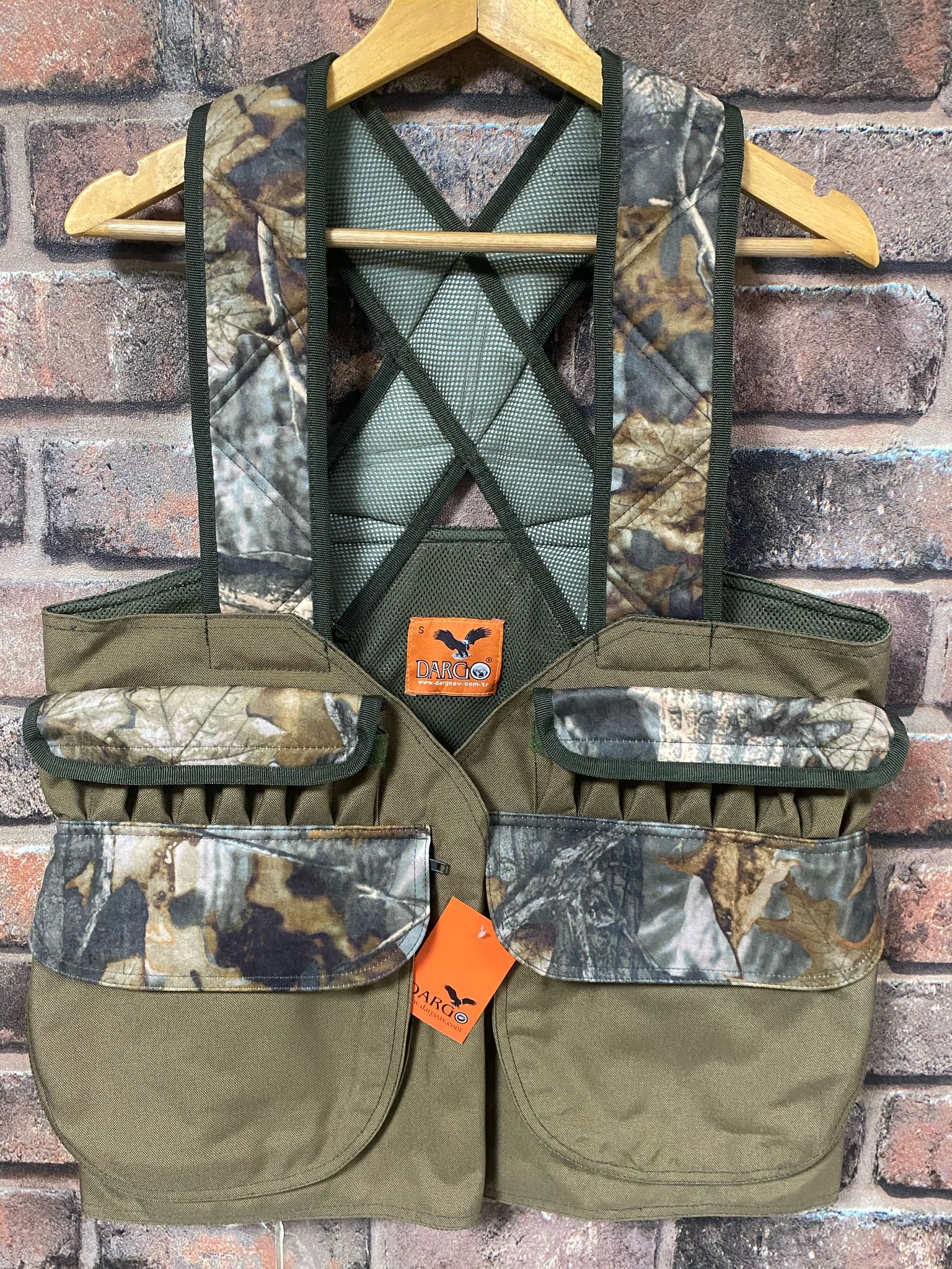 Dargo av yeleği Cordura Kumaştan imal edilmiştir. Astarlı ve arasında sıvı geçirmez bölme bulunmaktadır. Ön tarafta 40 adetlik fişeklik ve 2 ayrı bölme bulunmaktadır. Yelek yanlarında iki adet özel lastikli ve fermuarlı cep/suluk bulunmaktadır. Sıvı geçirmez geniş arka sırt çantası önde kalın kemik fermuar.